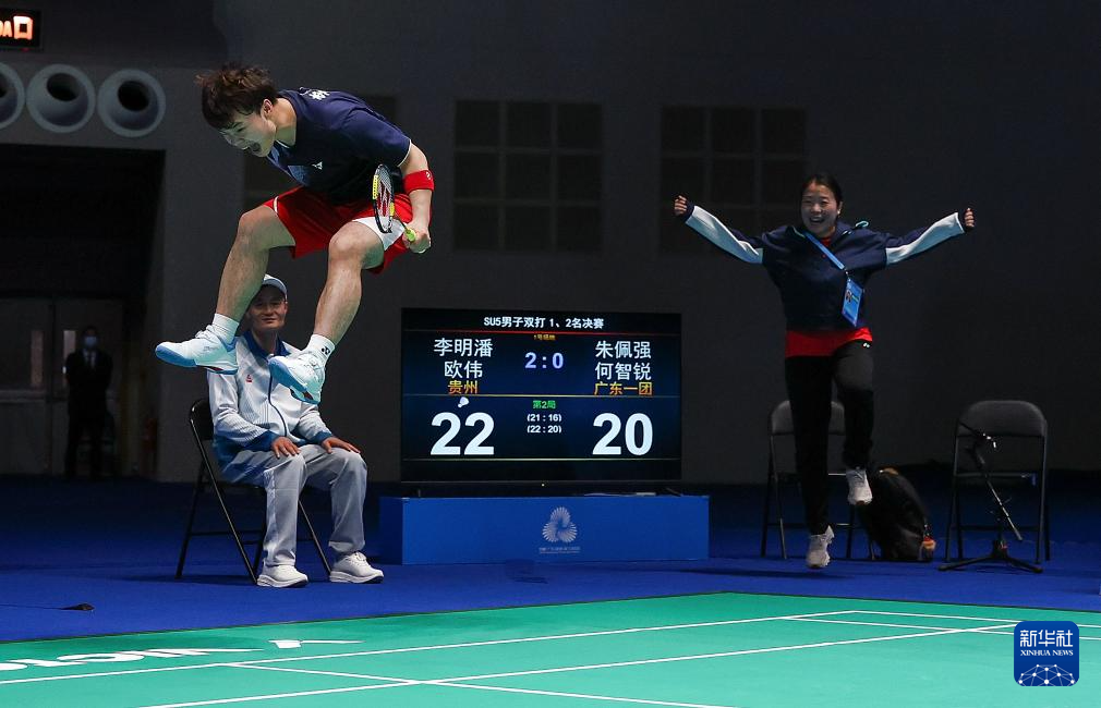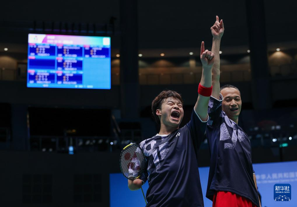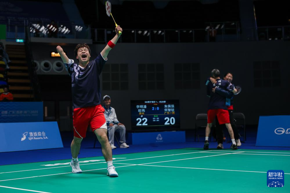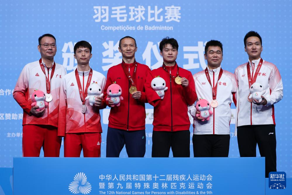 当日,全国第十二届残疾人运动会暨第九届特殊奥林匹克运动会羽毛球比赛在澳门举行,贵州队组合李明潘/欧伟、广东一团队组合朱佩强/何智锐和吉林队组合刘帅成/黄永杰获得SU5男子双打冠、亚、季军。