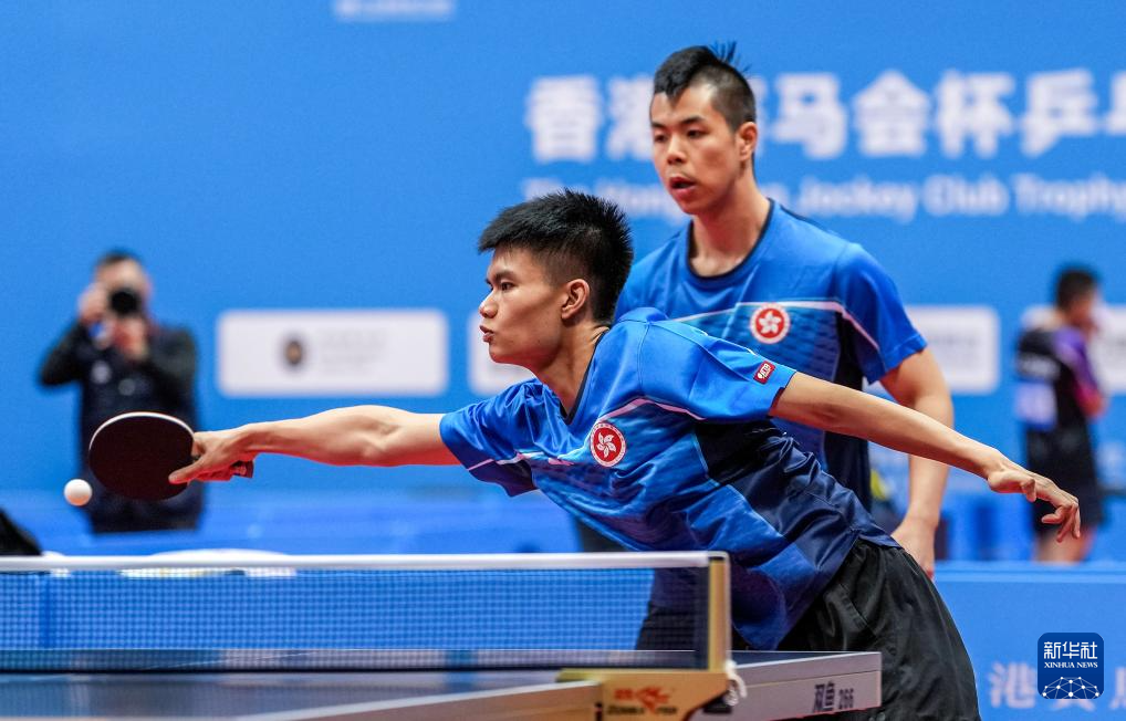 12月14日,香港队选手温伟乐/袁景诚(前)在铜牌赛中。他们3比1战胜香港队选手范嘉豪/梁仲仁,获得季军。
