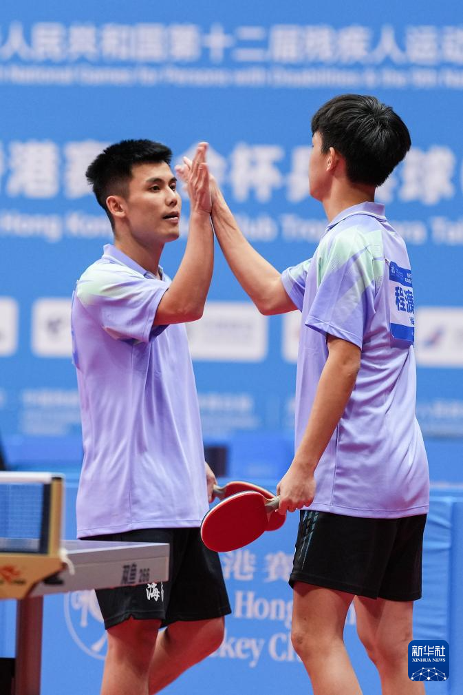 当日,全国第十二届残疾人运动会暨第九届特殊奥林匹克运动会乒乓球TT11项目男子双打比赛在香港举行。