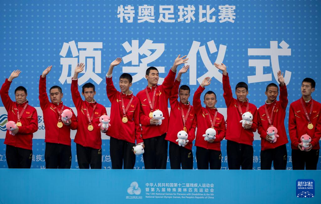 当日,全国第十二届残疾人运动会暨第九届特殊奥林匹克运动会特奥足球项目颁奖仪式在广东省江门市举行。