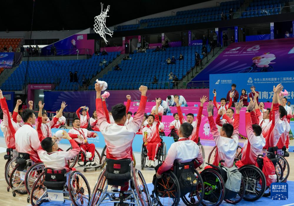 当日,在广州举行的全国第十二届残疾人运动会暨第九届特殊奥林匹克运动会轮椅篮球项目男子组金牌赛中,广东一团队以60比53战胜北京队,夺得冠军。辽宁队获得季军。