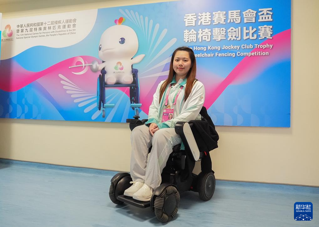 12月15日,大学生义工林渲甯完成服务后在轮椅击剑比赛场馆内留影。18岁那年,林渲甯因患脊髓神经急症颈部以下一度丧失知觉,经过多年康复后出行仍需依靠轮椅。本次赛事期间,林渲甯负责证件查验与咨询服务工作。林渲甯表示,此次义工经历最大的收获,是用实际行动证明残疾人群体不仅是社会的受助者,也可以成为给予者。