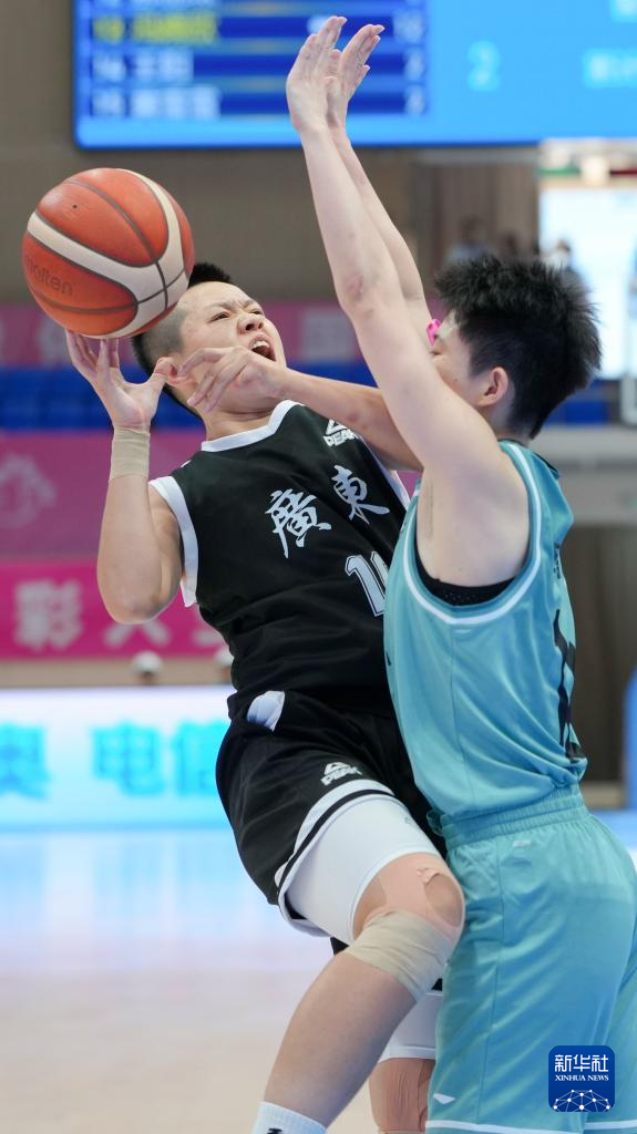 12月15日,广东一团队球员张丹(左)在比赛中进攻受阻。