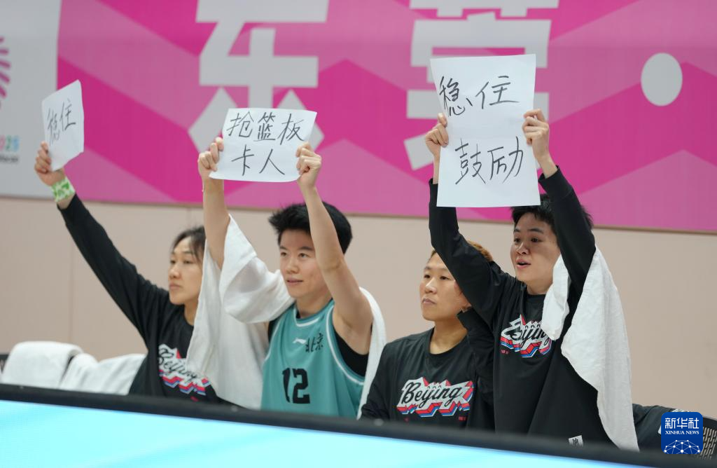 12月15日,北京队球员在场边举起提示场上队友的手写纸卡。
