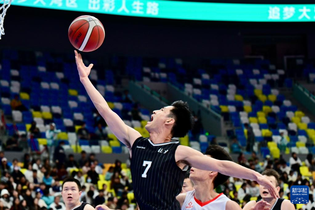 12月15日,山东队球员张鑫(左)在比赛中投篮。