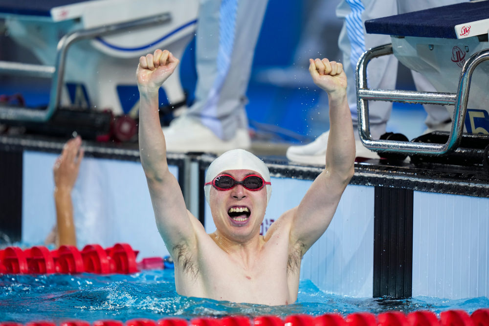 “所有运动里面我最喜欢游泳,最喜欢的运动员是潘展乐。”孙宇亮说。潘展乐在巴黎奥运会男子4X100米混合泳接力决赛中上演最后一棒超级逆转,助中国队夺下金牌,孙宇亮则在全国残特奥赛场上致敬了自己的榜样。
