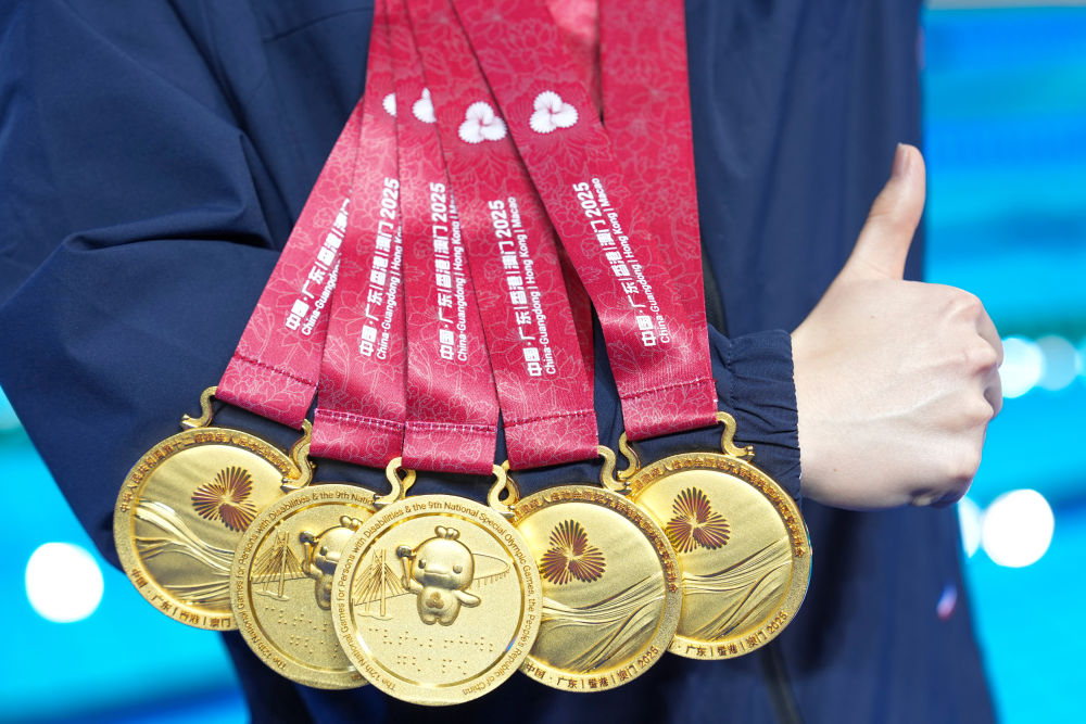 新华社江门12月15日电(记者伍志尊、齐芷玥)14日,全国第十二届残疾人运动会暨第九届特殊奥林匹克运动会特奥游泳赛场内浪花翻涌、掌声雷动。在男子22-29岁组4X50米混合泳接力决赛中,孙宇亮作为最后一棒一骑绝尘,帮助内蒙古队夺得金牌。这也是他在本届赛会上收获的第五枚金牌。
