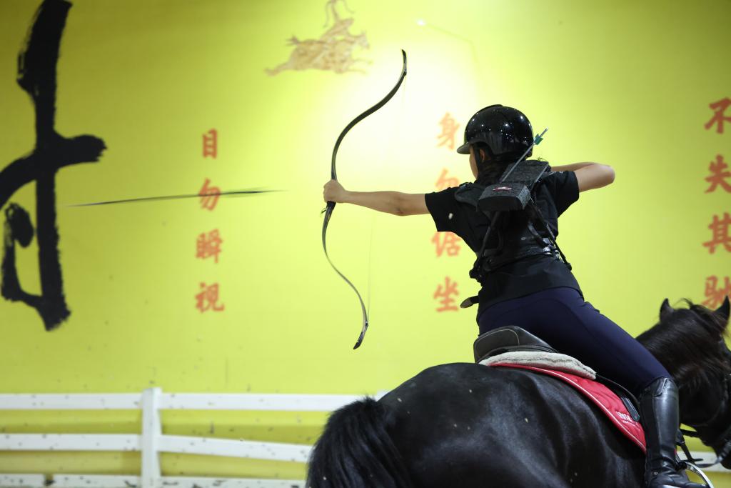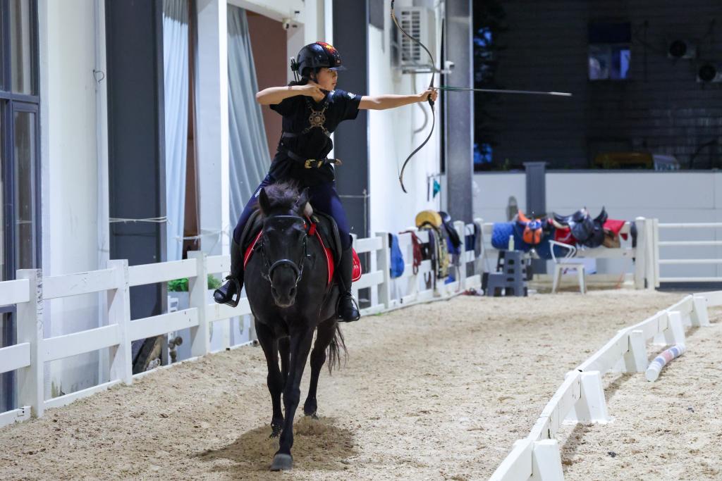 2025年12月17日,吴童雨在骑射课上进行练习。新华社记者 梁旭 摄