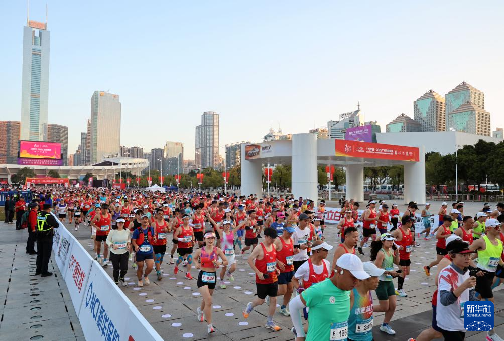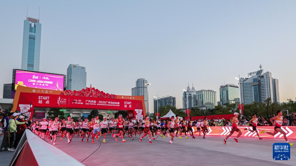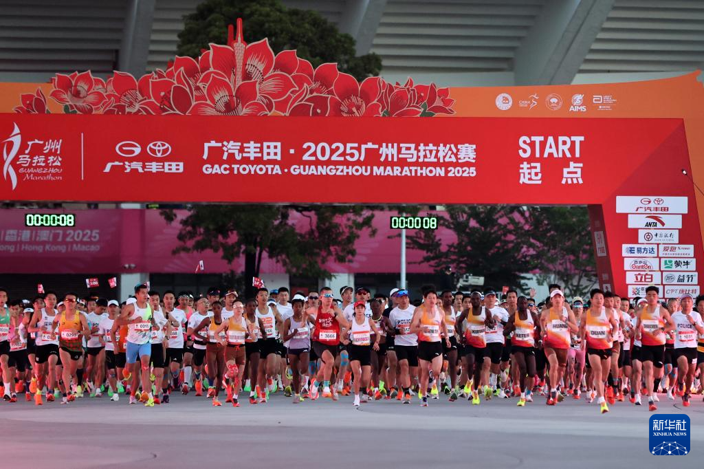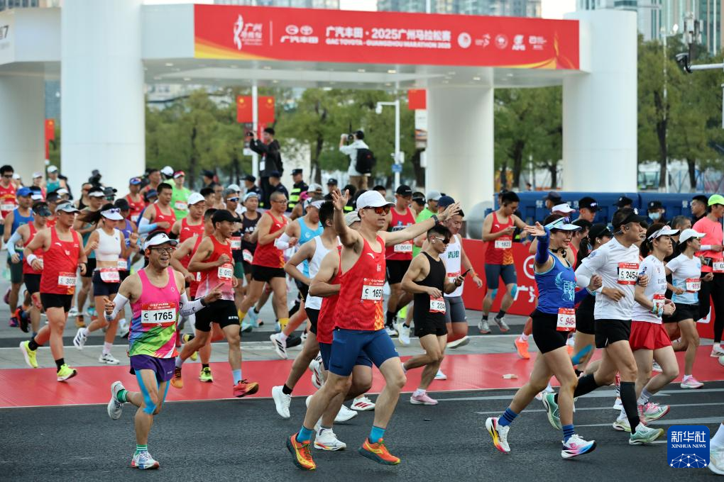 当日,2025广州马拉松赛鸣枪开跑。