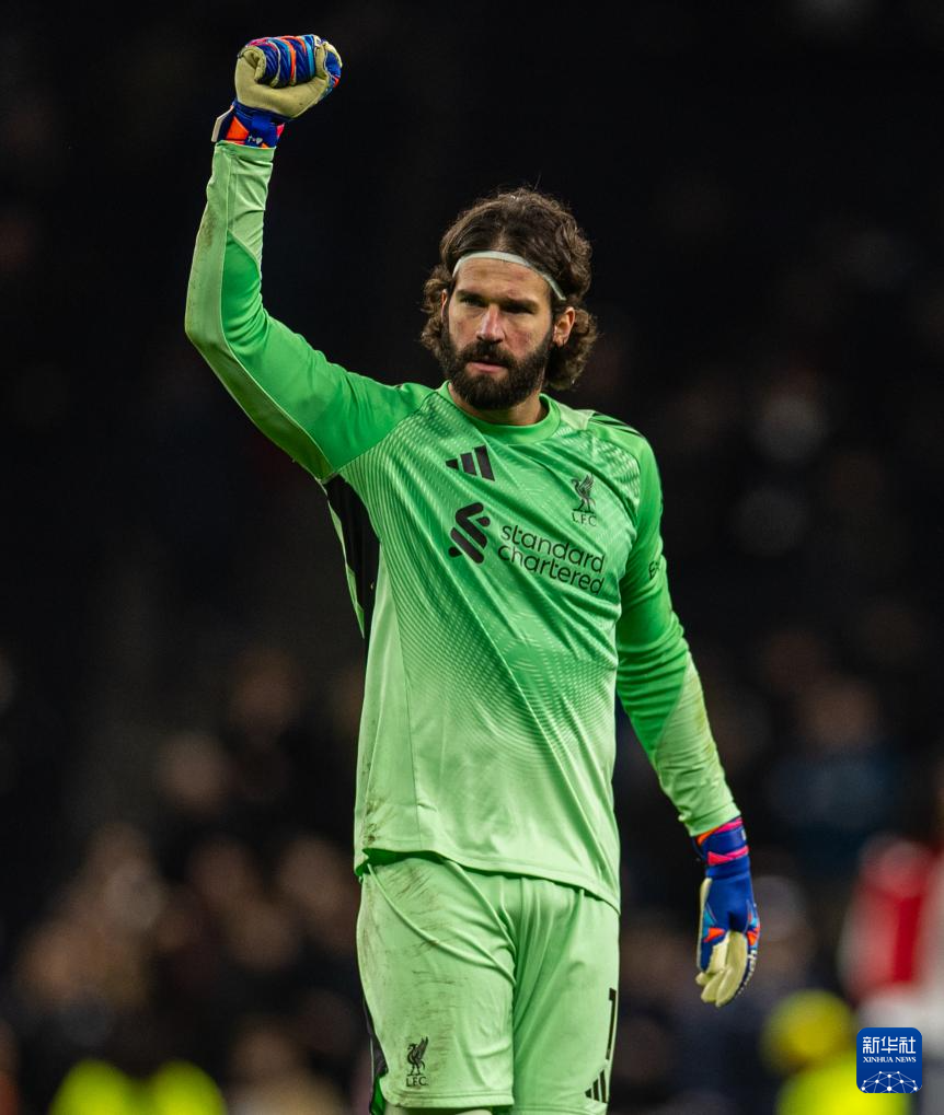 12月20日,利物浦队守门员阿利松赛后庆祝。