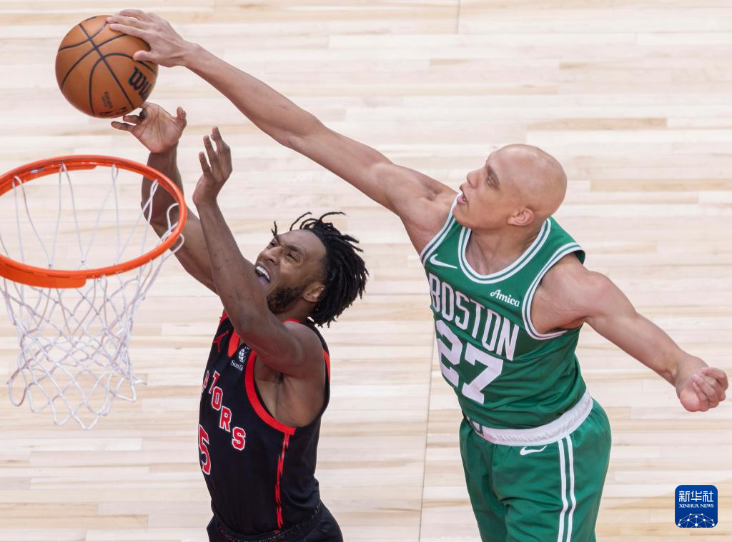 12月20日,猛龙队球员英格拉姆 (右)在比赛中封盖凯尔特人队球员沃尔什。