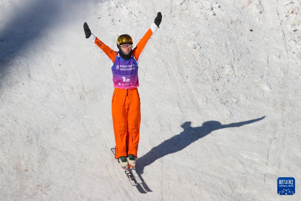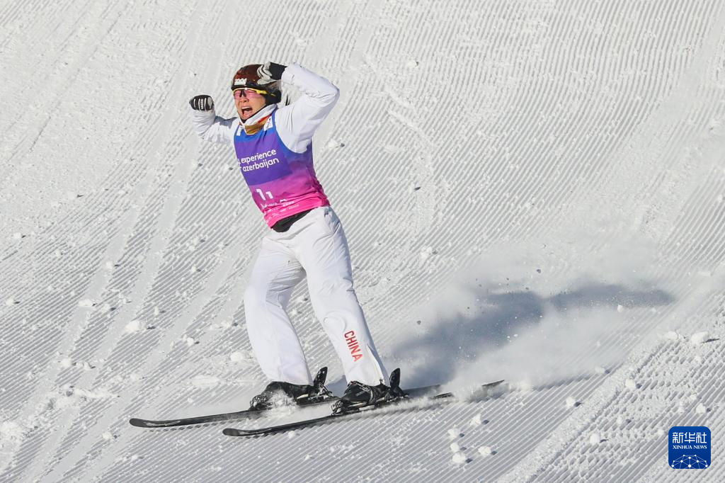 12月21日,中国一队选手徐梦桃在决赛中完成动作后庆祝。最终,由徐梦桃、李天马、齐广璞组成的中国一队获得冠军。
