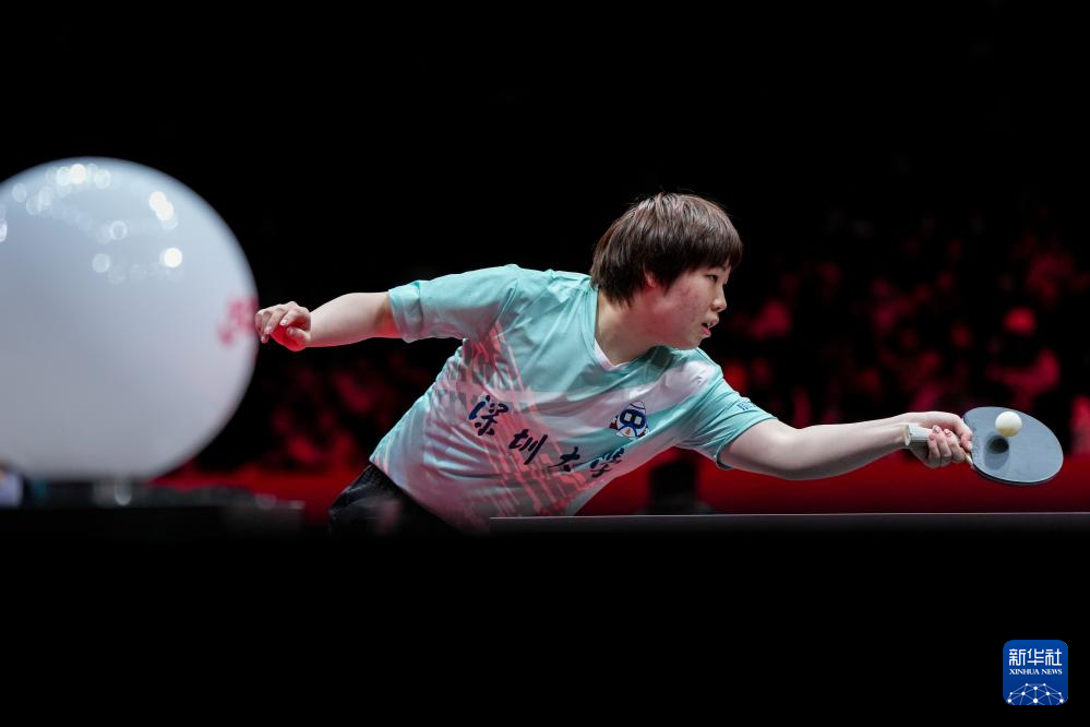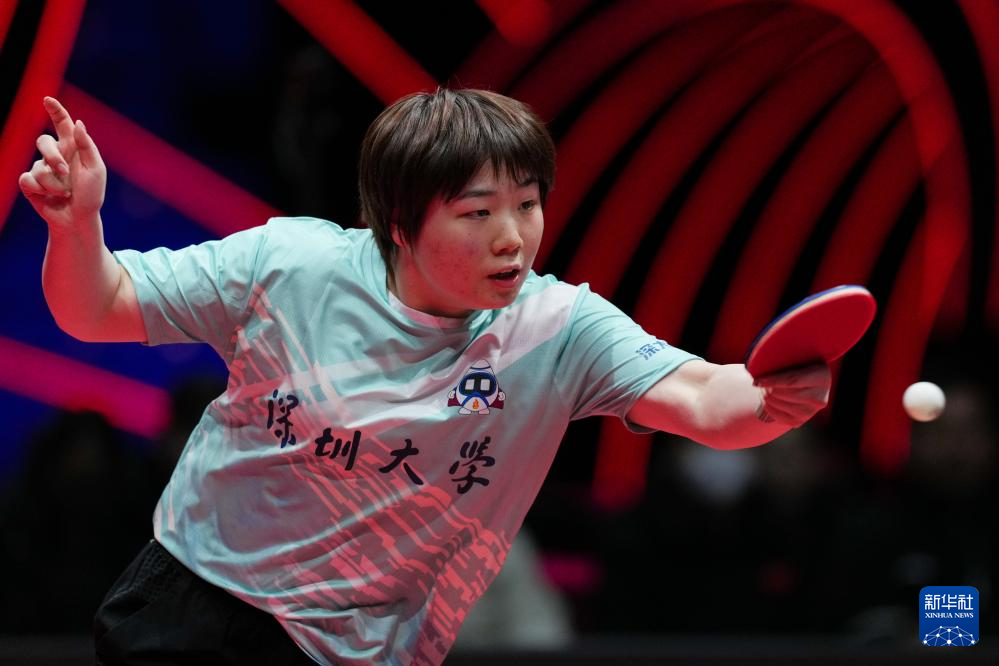 12月26日,深圳大学队选手蒯曼在女单比赛中。她2比3不敌上海龙腾队选手刘炜珊。