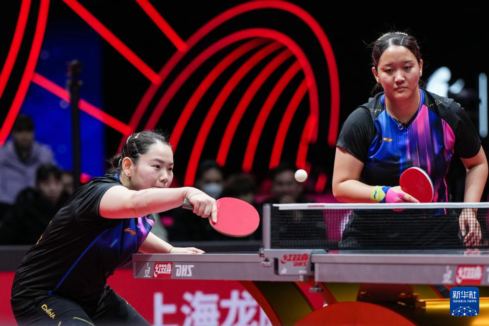 12月26日,上海龙腾队选手刘炜珊(左)在女双比赛中。她3比2战胜深圳大学队选手蒯曼。