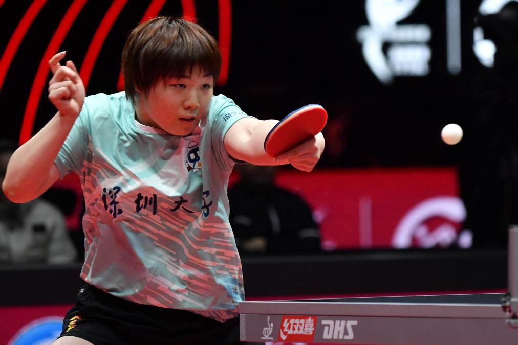 12月26日,深圳大学队选手蒯曼在女单比赛中回球。新华社发(刘臻睿摄)