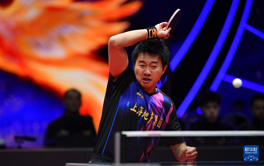 12月27日,山东魏桥·向尚运动队选手林昀儒在单打比赛中回球。他3比0战胜上海地产集团队选手孙正。
