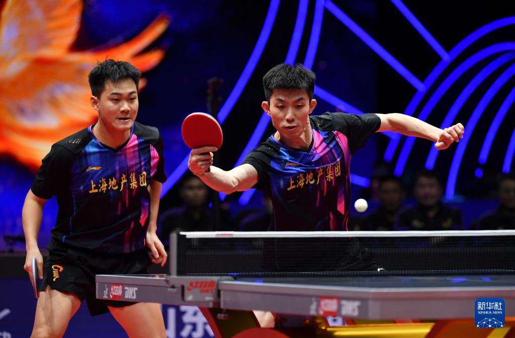 12月27日,上海地产集团队组合周恺(右)/孙正在双打比赛中。他们0比3不敌山东魏桥·向尚运动队组合梁靖崑/林昀儒。