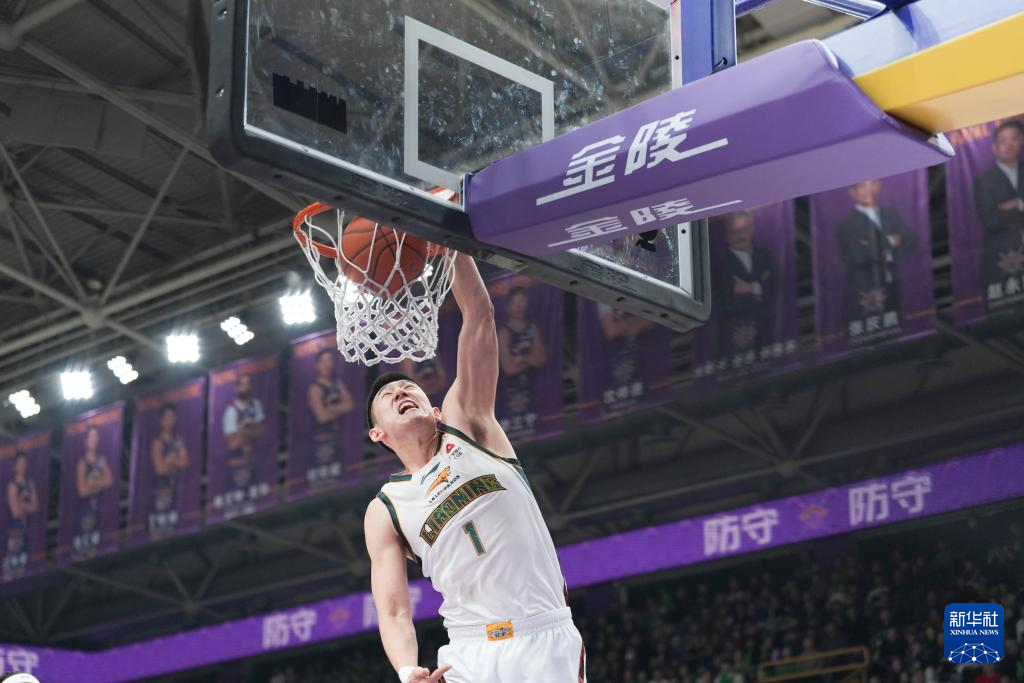 12月27日,辽宁本钢队球员付豪在比赛中扣篮。