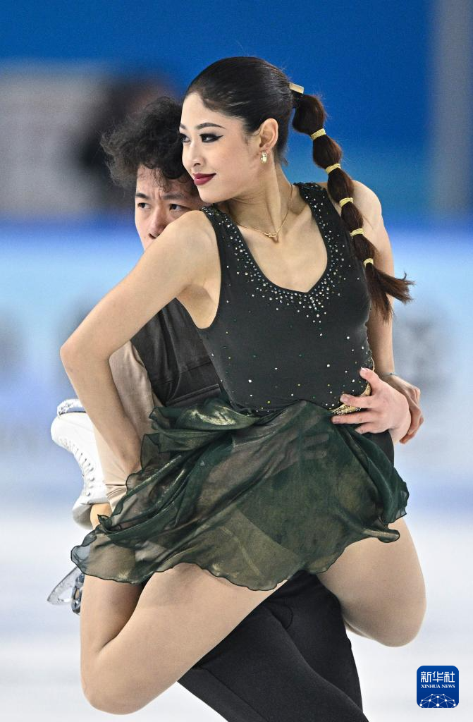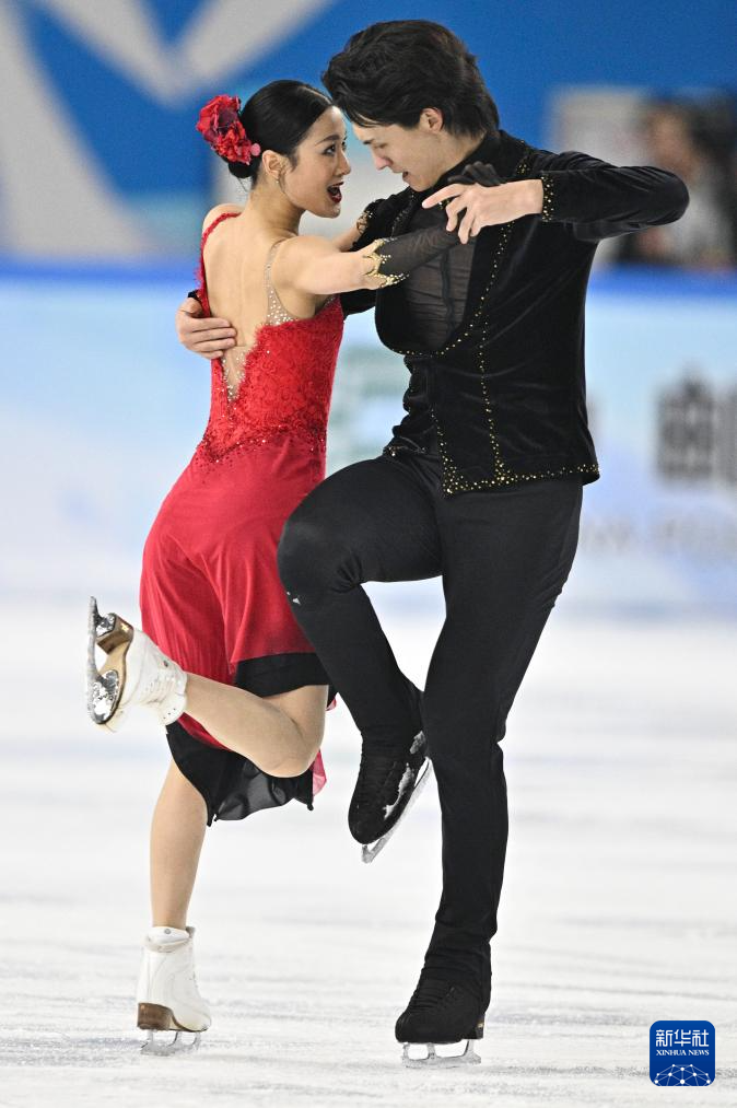 12月27日,吉林省体育局冰上运动管理中心组合王诗玥(前)/柳鑫宇在冰舞自由舞比赛中。他们获得冰舞项目冠军。