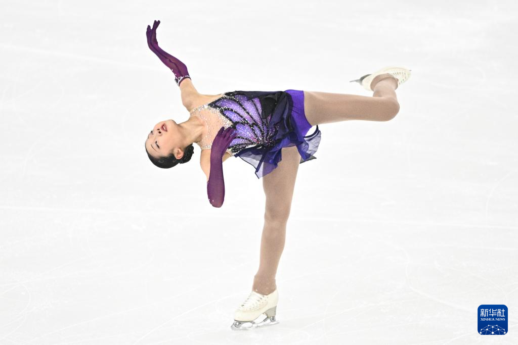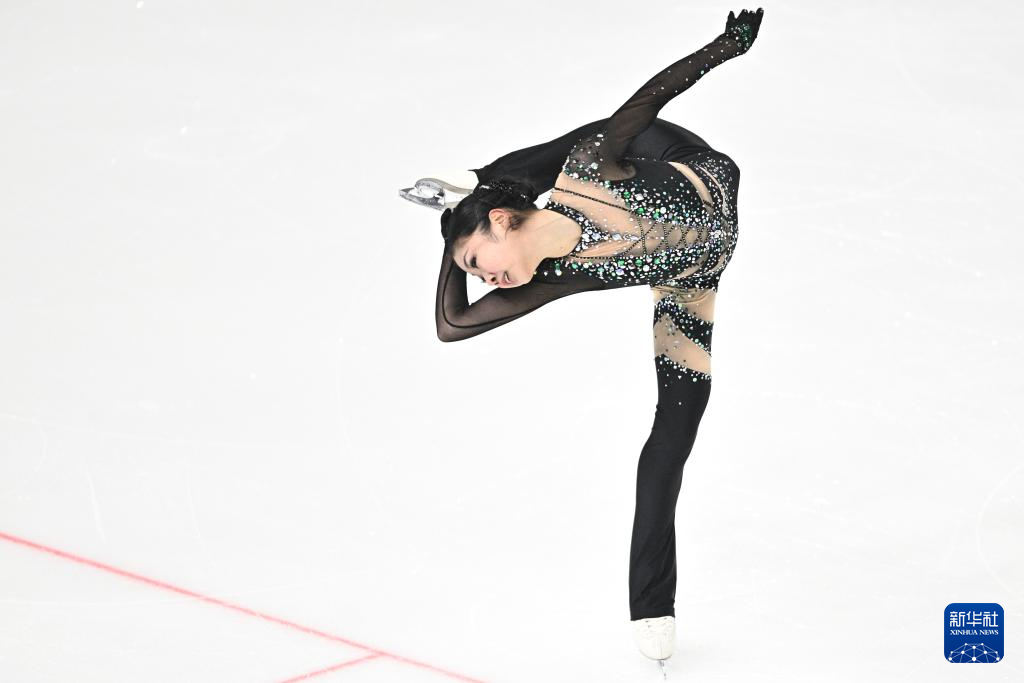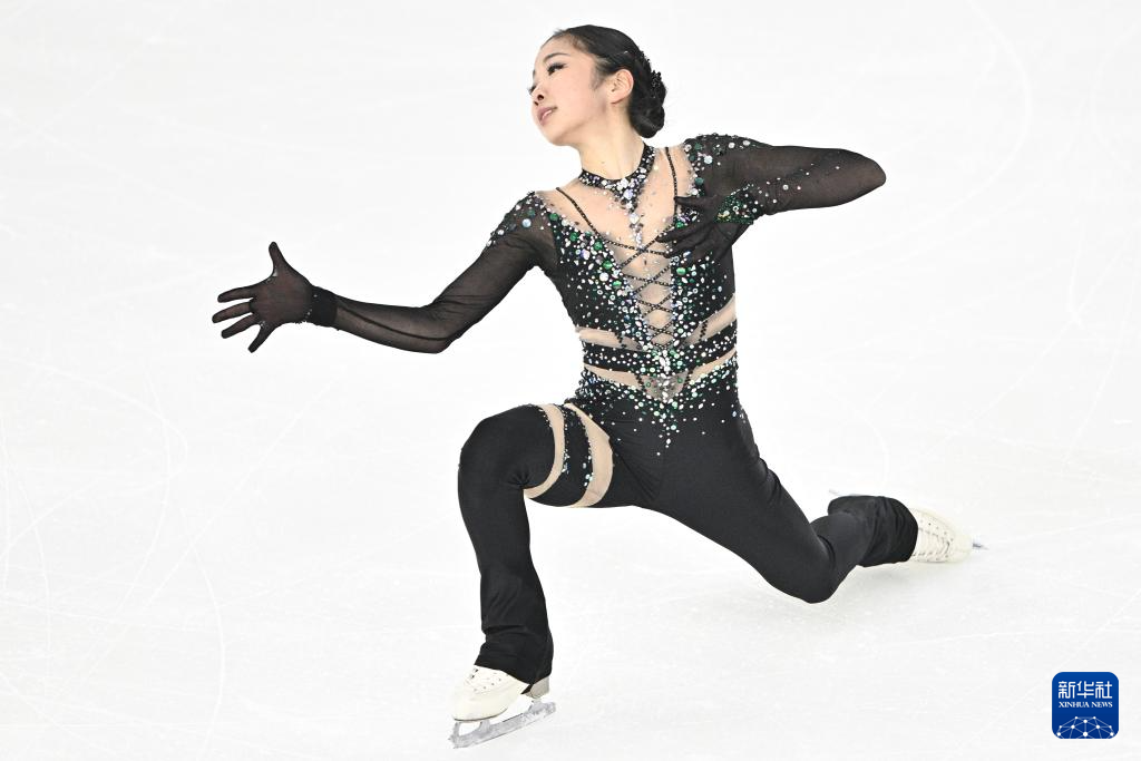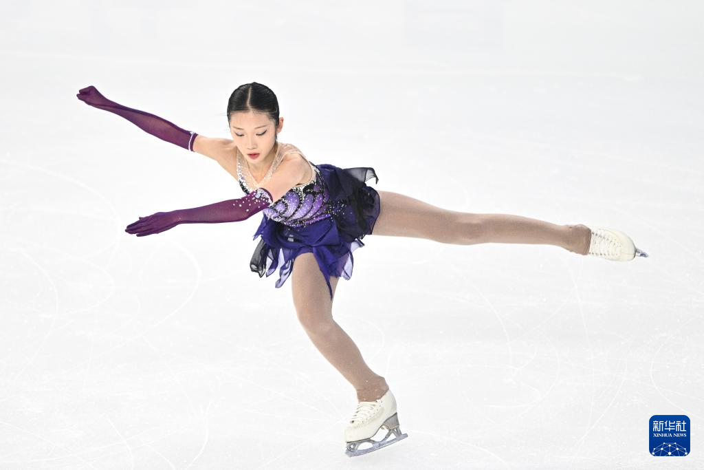 12月27日,北京市冬季运动管理中心选手张瑞阳在比赛中。她在女子单人滑短节目比赛中位列第二。