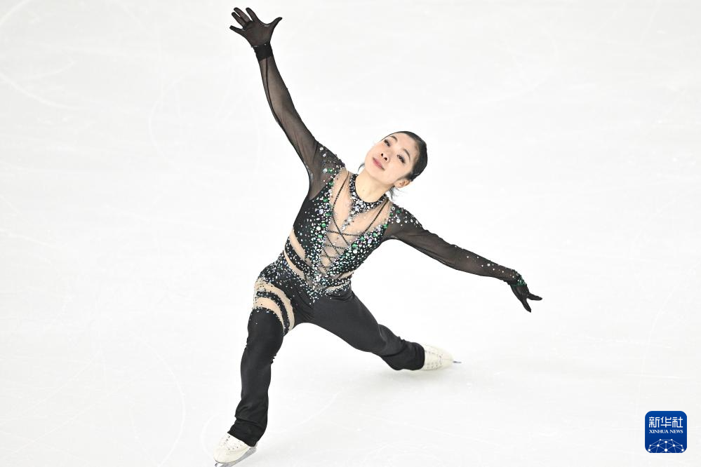 12月27日,北京市冬季运动管理中心选手金书贤在比赛中。她在女子单人滑短节目比赛中位列第一。