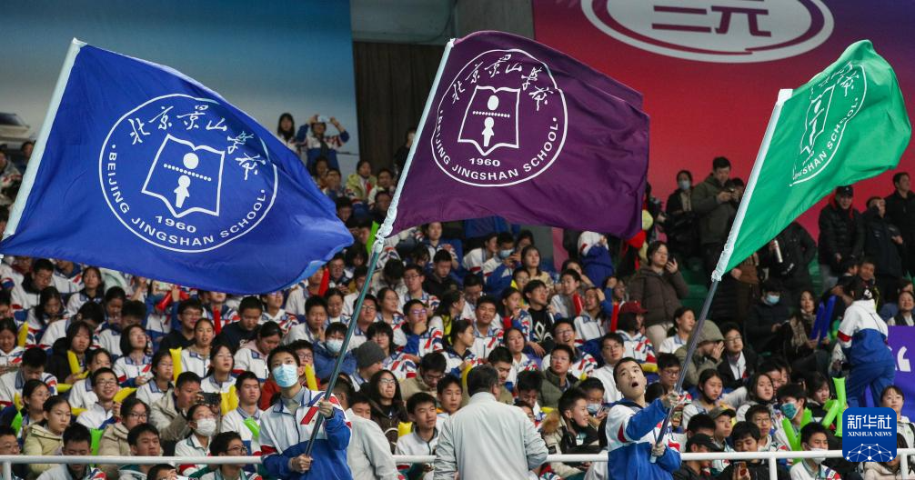 12月28日,北京景山学校学生在夺冠后挥舞校旗庆祝。