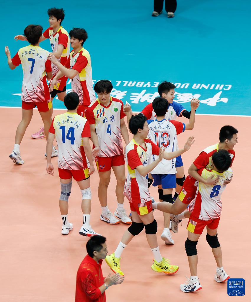 当日,在2025年北京市中小学生排球冠军赛高中男子组决赛中,北京景山学校队3比0战胜北京师范大学第二附属中学队,获得冠军。