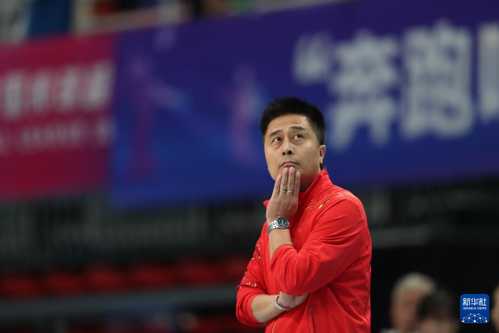 12月28日,北京景山学校队主教练李峰在比赛中查看比分。
