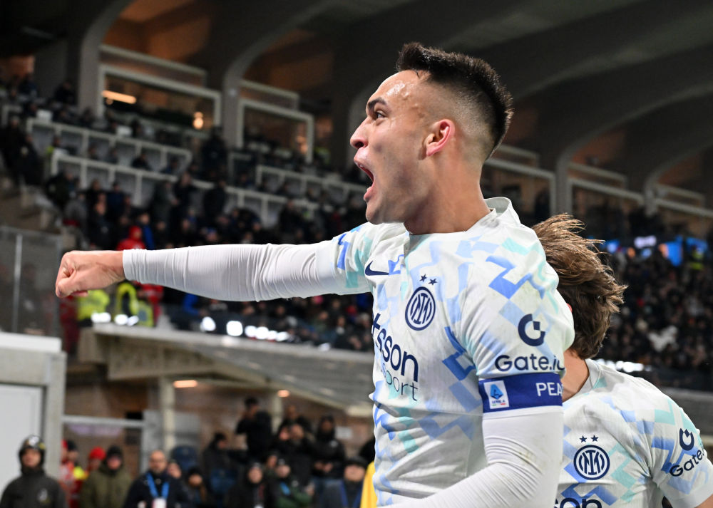 12月28日,国际米兰队球员劳塔罗庆祝进球。新华社发(阿尔贝托·林格利亚 摄)