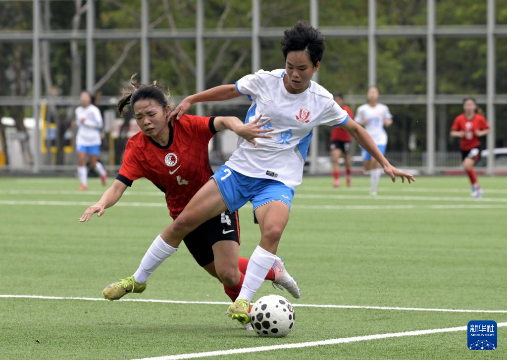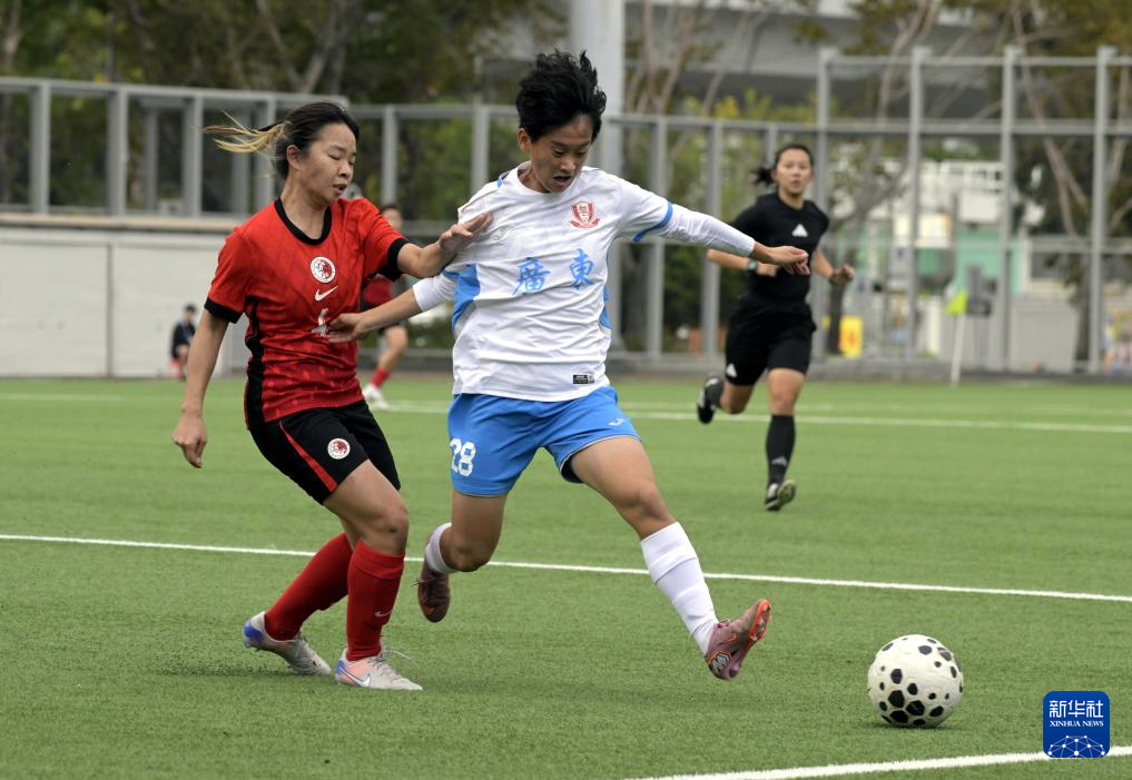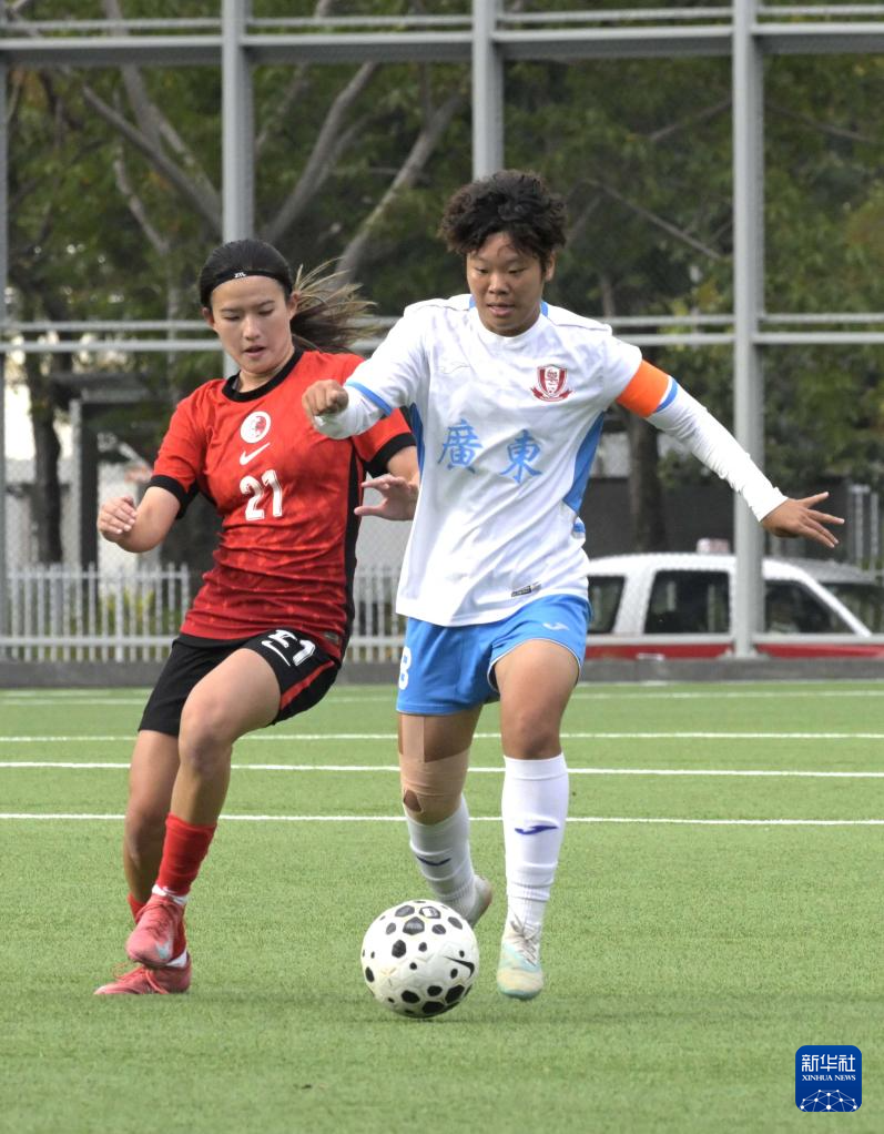 12月28日,广东队球员黄盈芯(左)与香港队球员高栢龄在比赛中拼抢。