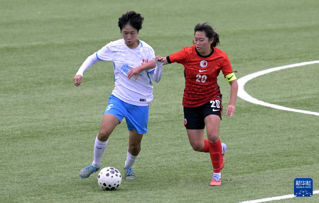 12月28日,广东队球员龙芷柔(右)与香港队球员朱素君在比赛中拼抢。