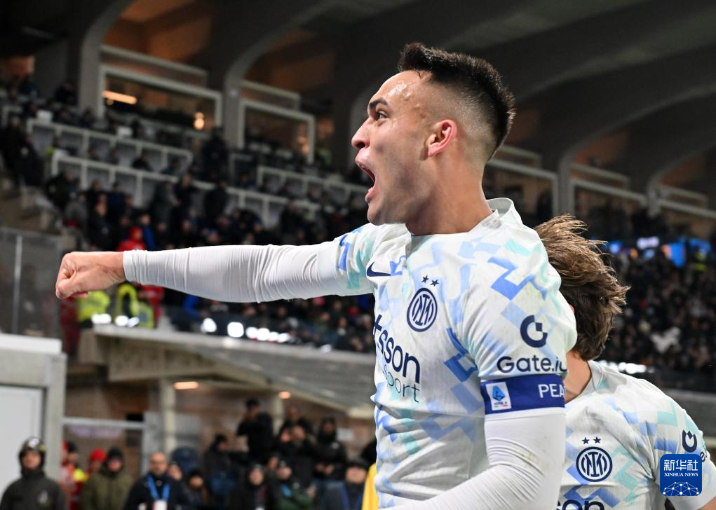 12月28日,国际米兰队球员劳塔罗·马丁内斯庆祝进球。