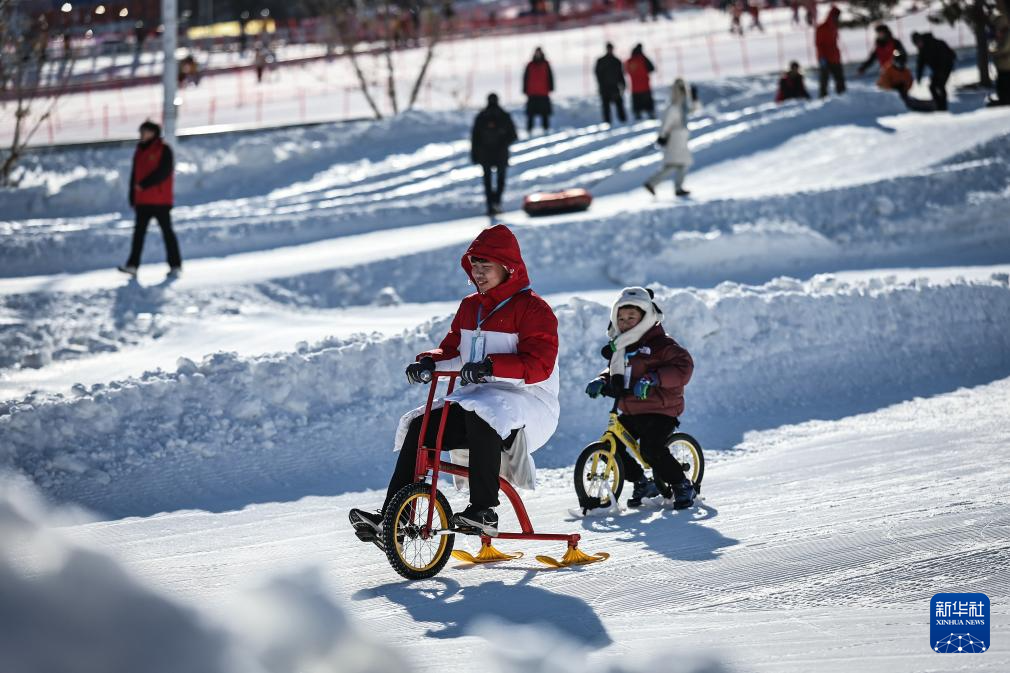 12月30日,与会人员在启动仪式中体验雪上趣味项目。