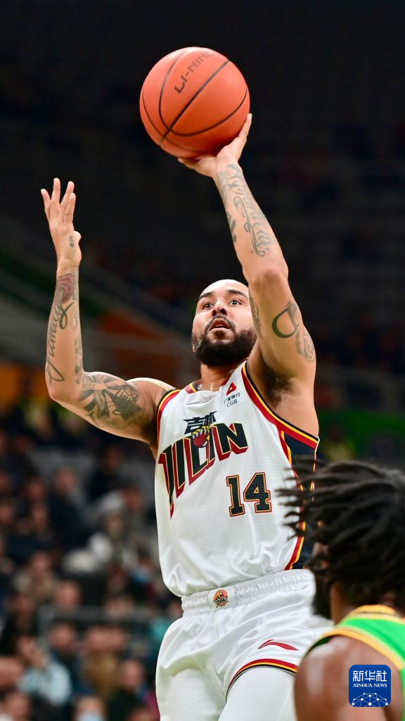 1月4日,吉林长白山恩都里队球员摩尔在比赛中投篮。