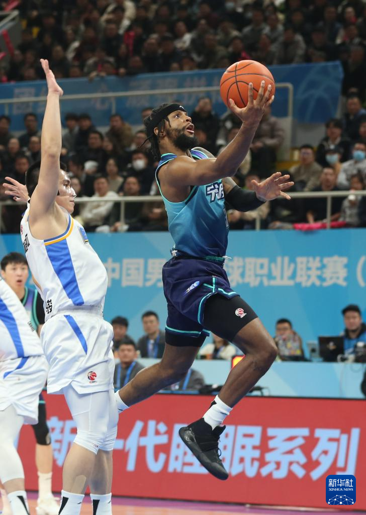 1月6日,宁波町渥队球员鲁吐布拉(右)在比赛中上篮。