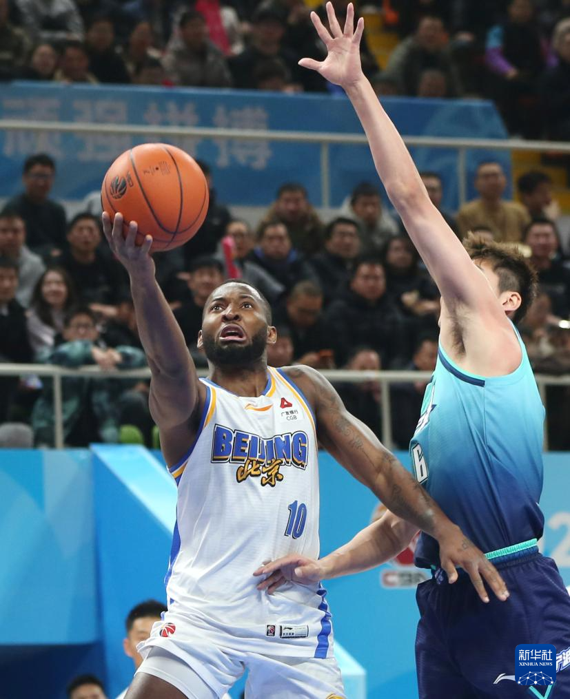 1月6日,北京北汽队球员杰曼(左)在比赛中上篮。