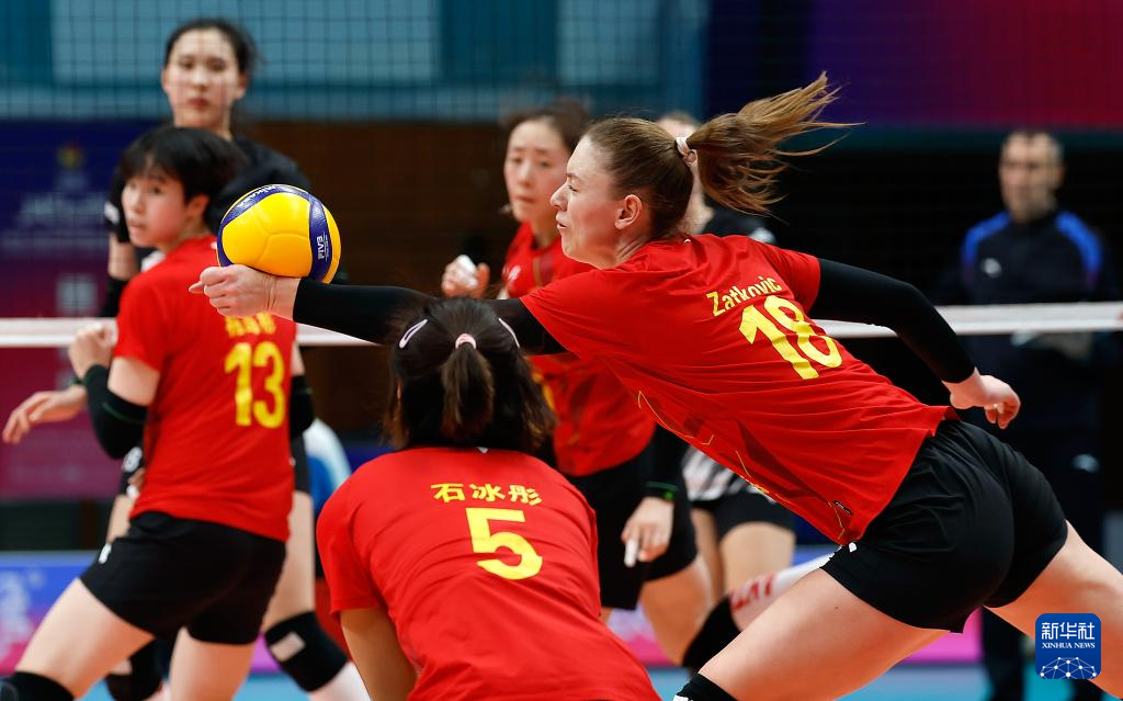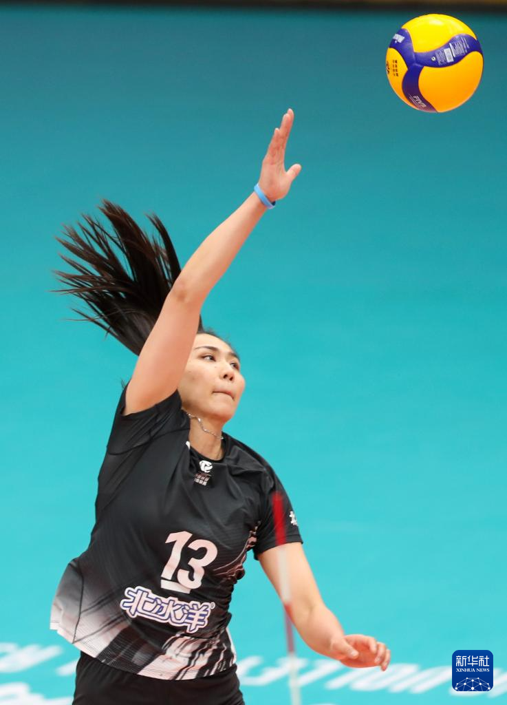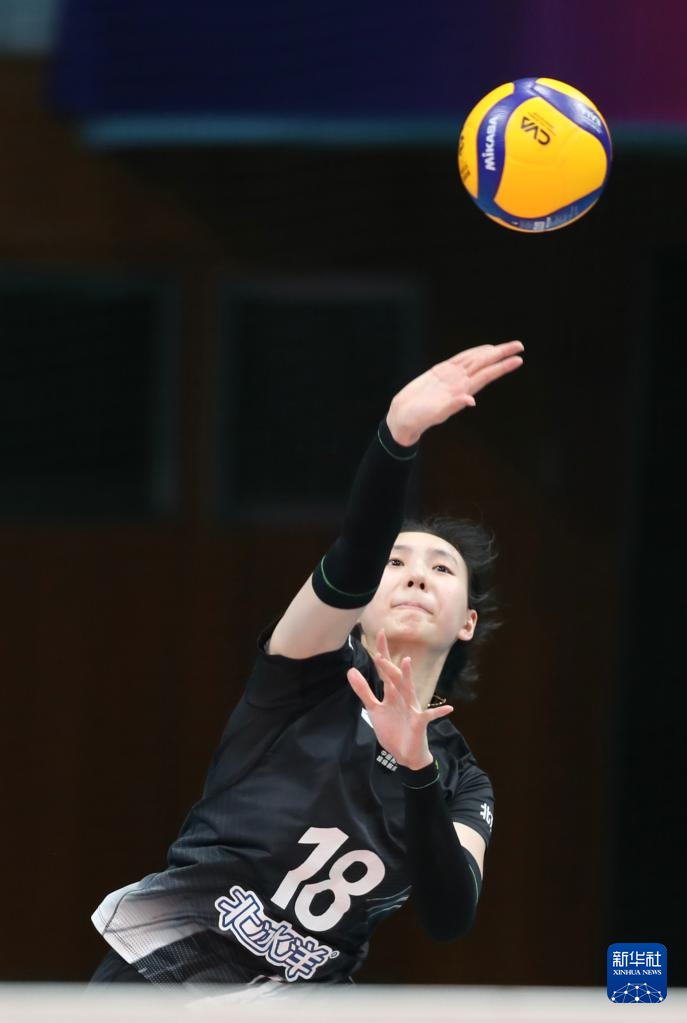 1月6日,北京北冰洋队球员金佳宝在比赛中发球。