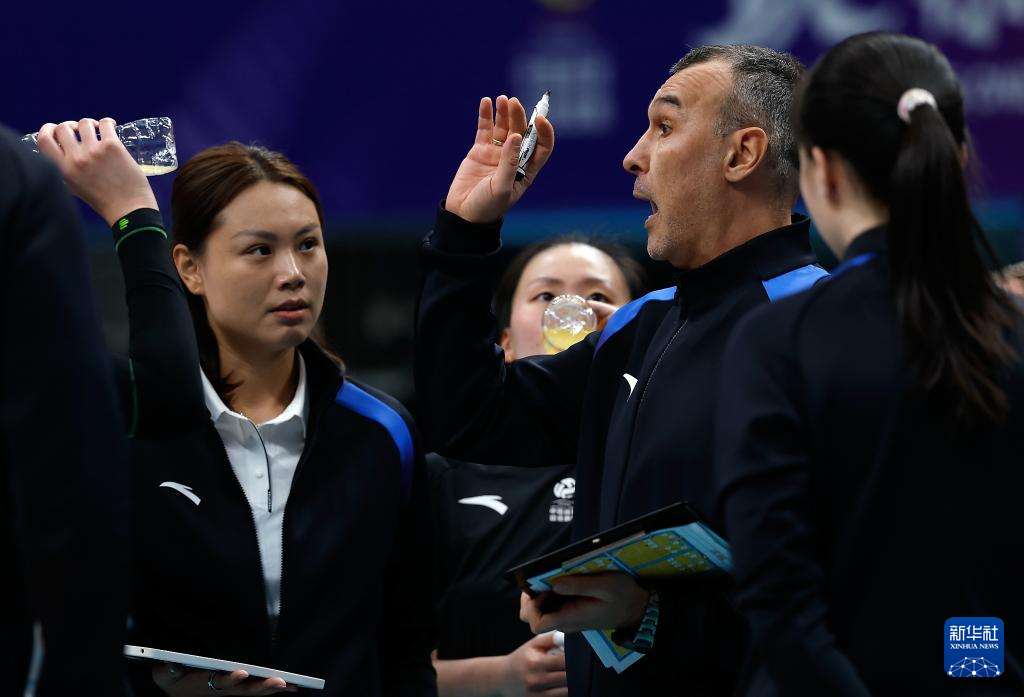 1月6日,北京北冰洋队主教练伍利塞维奇(右二)在比赛间隙指导球员。