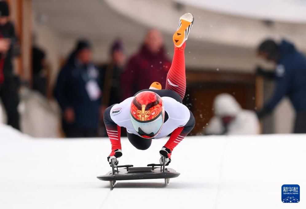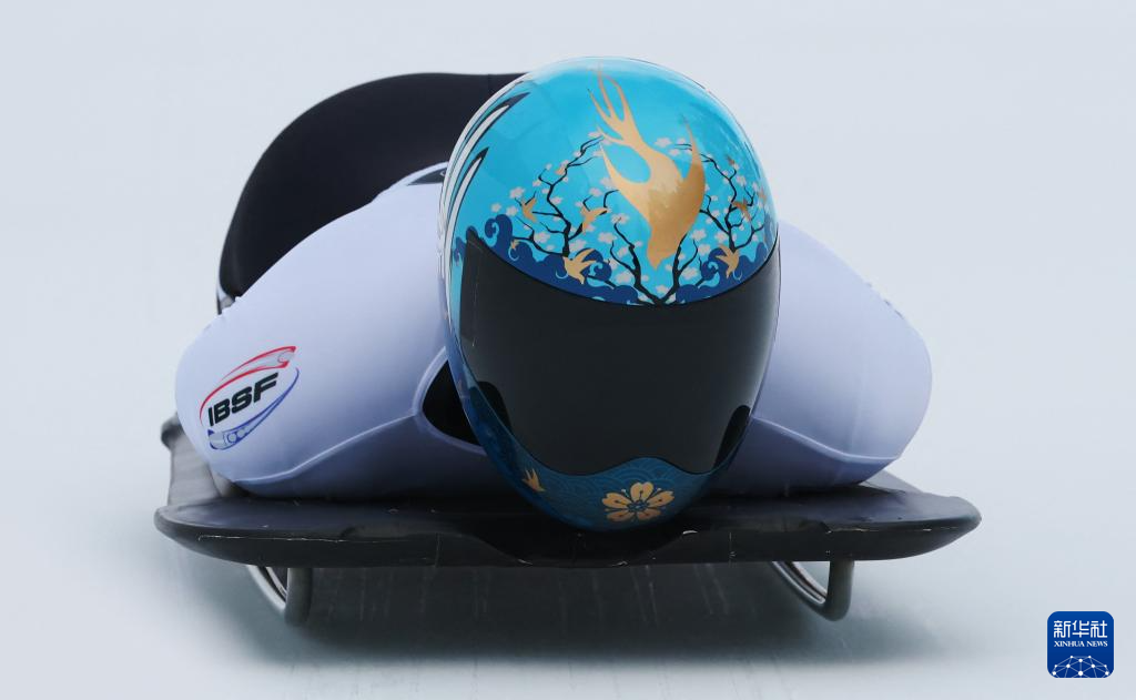 1月9日,中国选手殷正在男子钢架雪车第一轮比赛中。