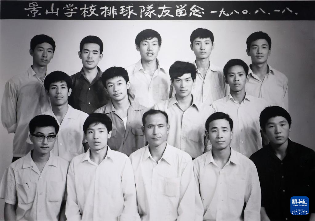这是1980年8月18日拍摄的第一批北京景山学校排球队队友合影留念(翻拍照片)。