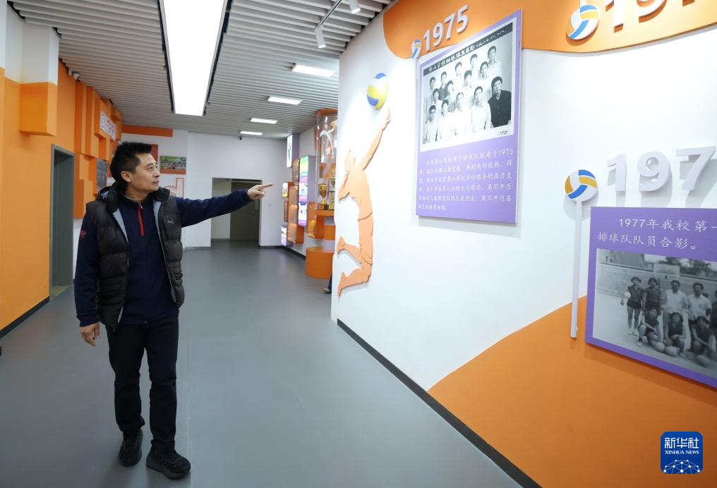1月8日,北京景山学校排球队主教练李峰介绍球队历史。