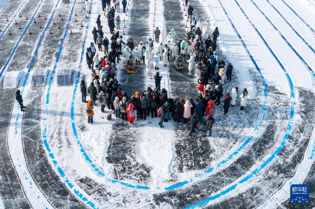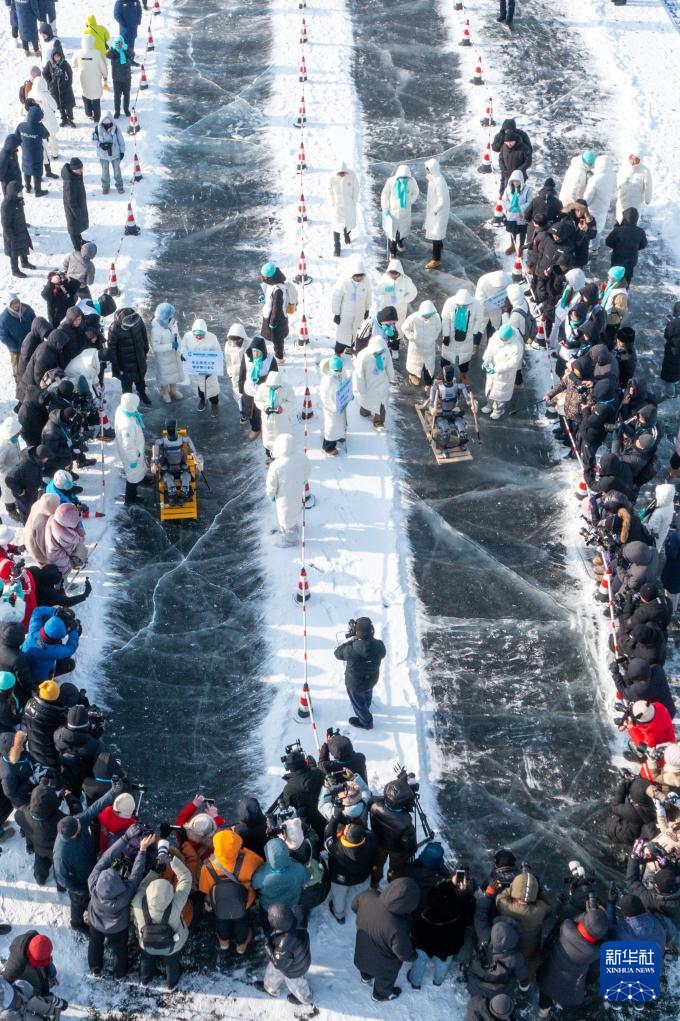 1月10日,机器人进行爬犁竞速赛(无人机照片)。