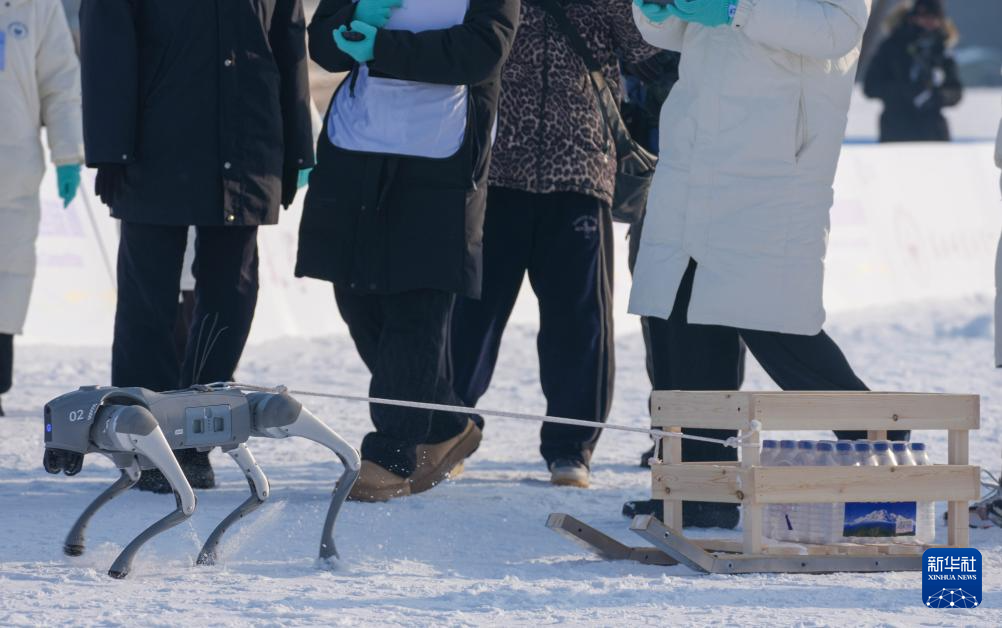1月10日,多足仿生机器人在雪橇运输赛前向观众挥手。