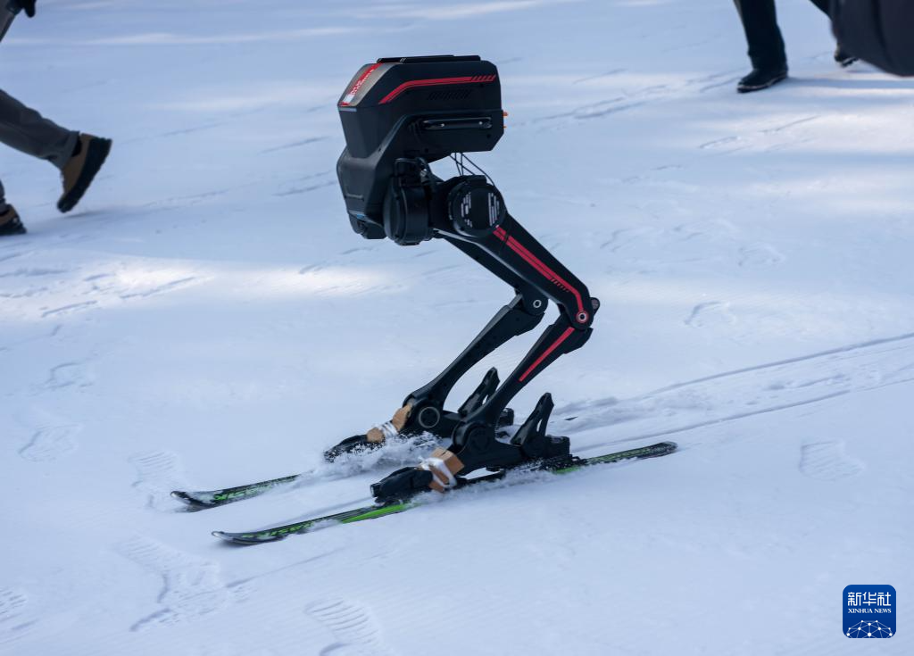 1月10日,双足机器人在滑雪竞速赛中。
