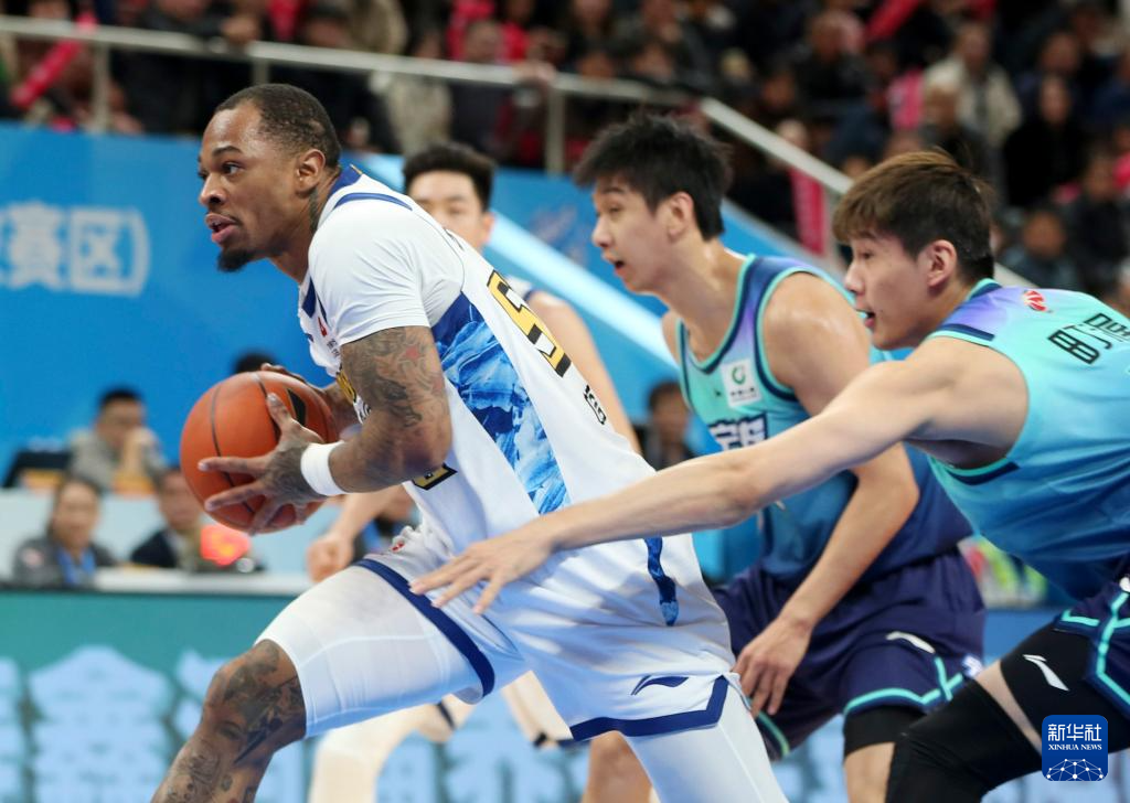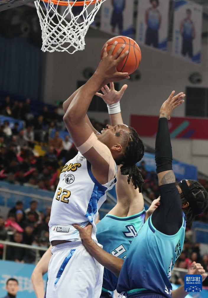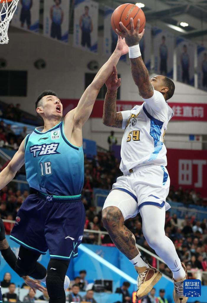 1月11日,宁波町渥队球员鲁吐布拉(中)在比赛中上篮。