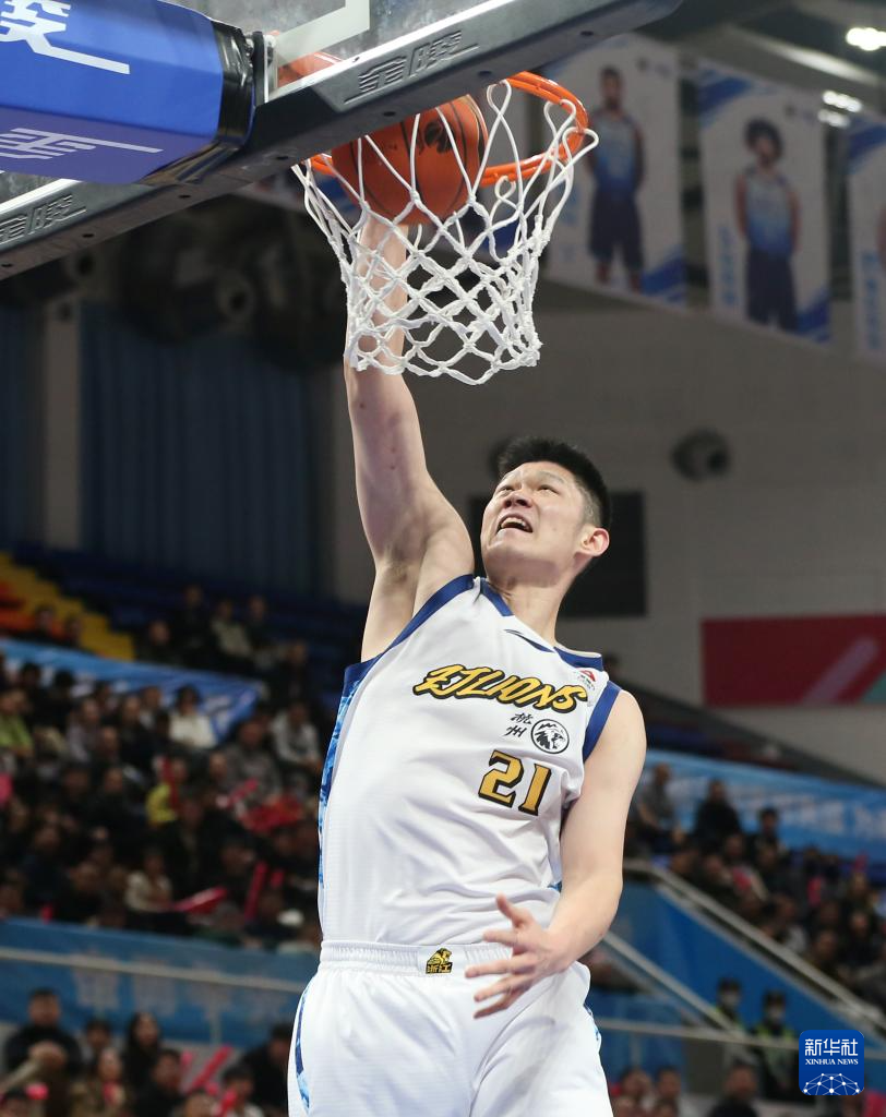 1月11日,浙江方兴渡队球员胡金秋在比赛中扣篮。