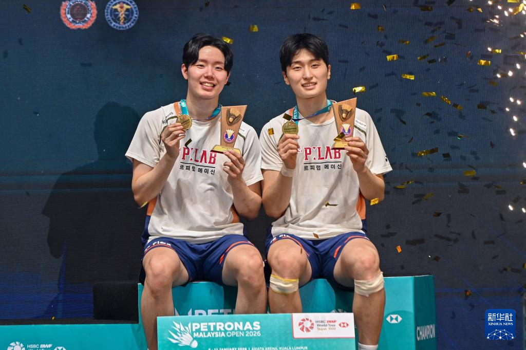 当日,在马来西亚吉隆坡举行的2026年马来西亚羽毛球公开赛男双决赛中,韩国组合金元浩/徐承宰2比1战胜马来西亚组合谢定峰/苏伟译,夺得冠军。