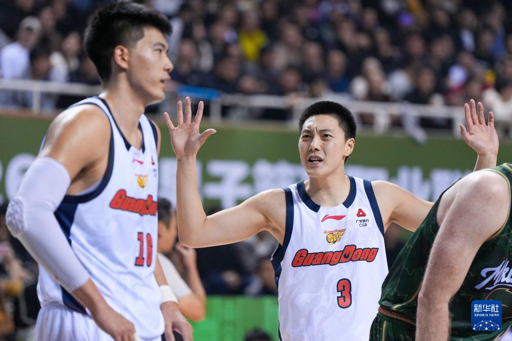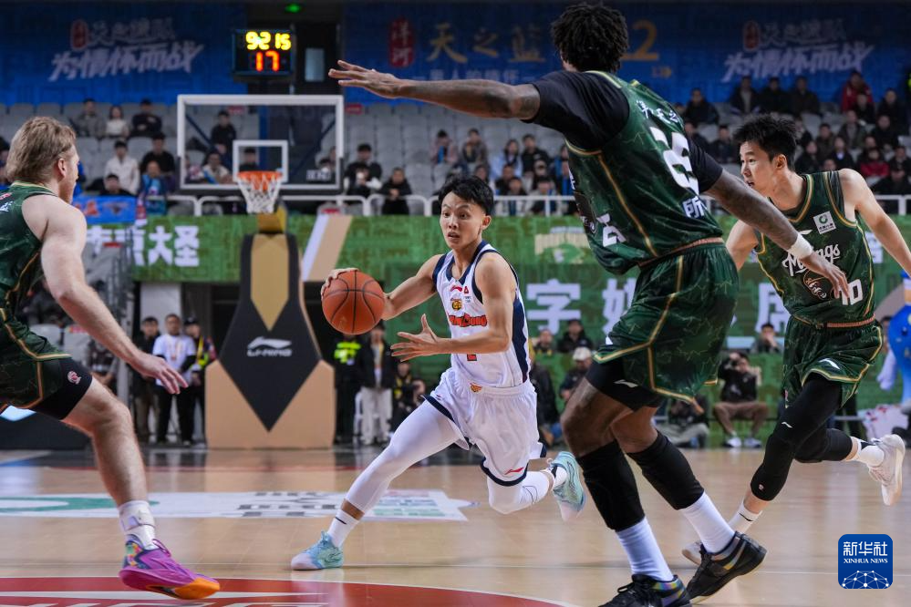 1月13日,广东东阳光队球员胡明轩(右)在比赛中。