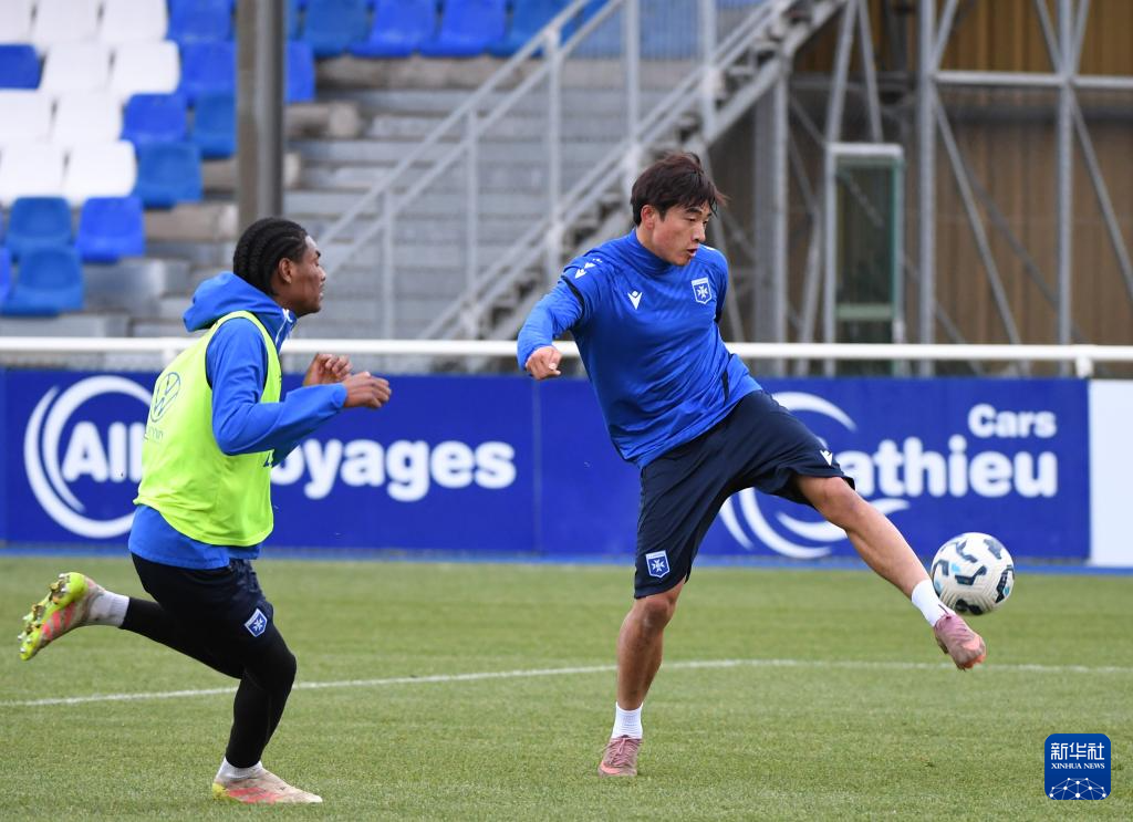 当日,即将加盟法甲欧塞尔俱乐部的中国球员魏祥鑫在法国欧塞尔参加欧塞尔预备队训练。