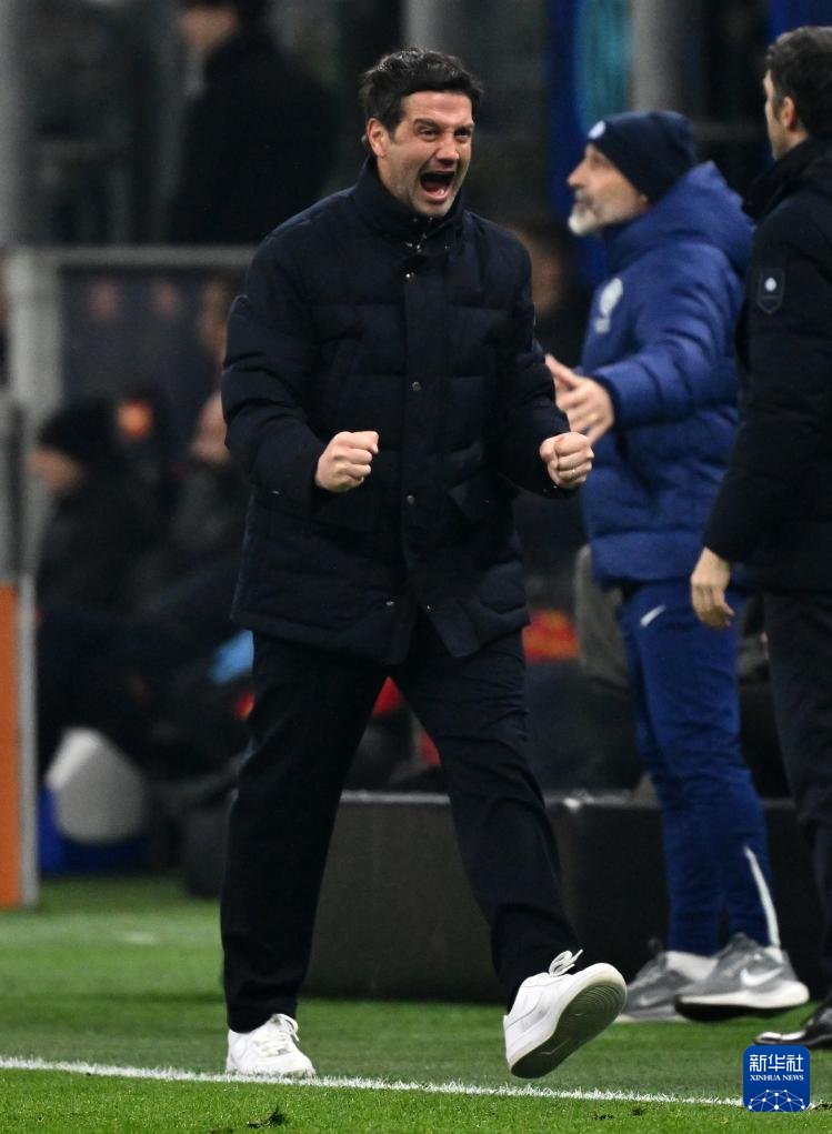 1月14日,国际米兰队主教练齐沃庆祝胜利。